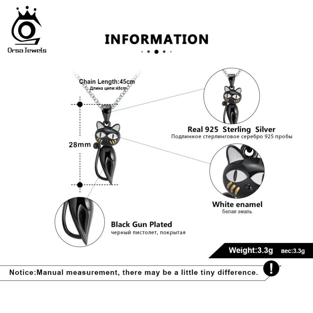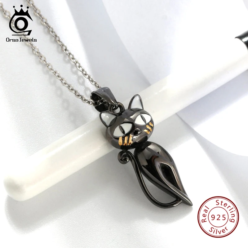 discounted ORSA JEWELS Real 925 Sterling Silver Pendant Original Design Cute Cat Black Gun Enamel Craft Women