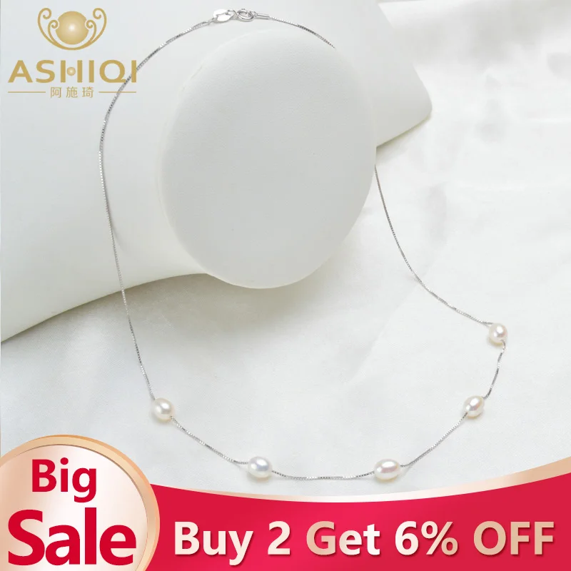 Greatest ASHIQI Real Pure 925 Sterling Silver Necklace Chain 6-7mm Natural Freshwater Pearl Pendant Jewelry